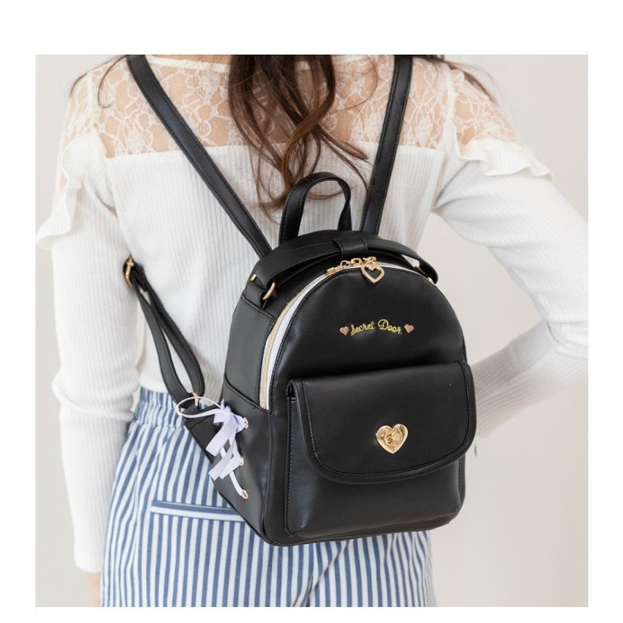 Amazon ミニリュック 女の子 かわいい 無地 ロゴ おしゃれ 小学生 立体リボン ガールズ リュック パステル リボン ハートのチャーム ブラック Angela Carina リュックサック